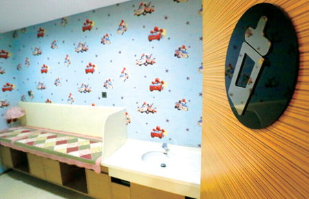 時(shí)代廣場即人們熟知的“美美百貨”,專門設(shè)置了家庭衛(wèi)生間、育嬰室。家庭衛(wèi)生間內(nèi)設(shè)有:兒童馬桶、成人馬桶及嬰兒保護(hù)座椅,且墻壁上貼有使用說明。