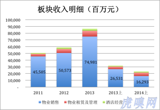 2014年上半年,物業(yè)租賃及管理收入逾51億,同比增長33.9%。