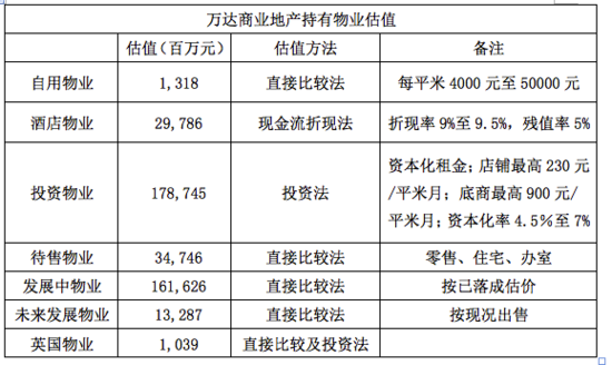 萬達(dá)商業(yè)地產(chǎn)持有的“投資物業(yè)”估值高達(dá)1787.45億元,采用的估值方法是“租金資本化”。資本化率越小,估值越高。其實(shí)百姓比較熟悉的是“租售比”這個概念:房租3000元/月,房價144萬,則租售比為480。即480個月(40年)的租金可收回購房成本。這個例子中,假如買家根據(jù)3000元月租金計算出144萬的房價,使用的資本化率就是2.5%。