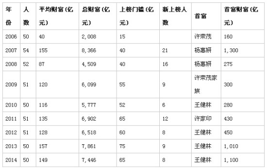 數(shù)據(jù)來源:《2014雅居樂海南 清水灣胡潤百富榜》(下同)