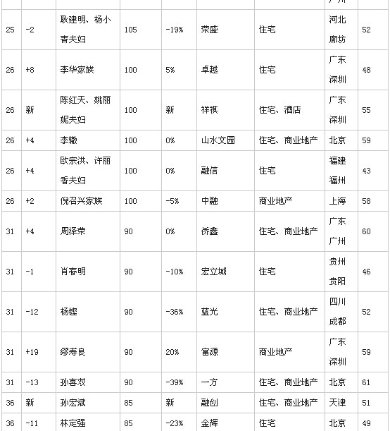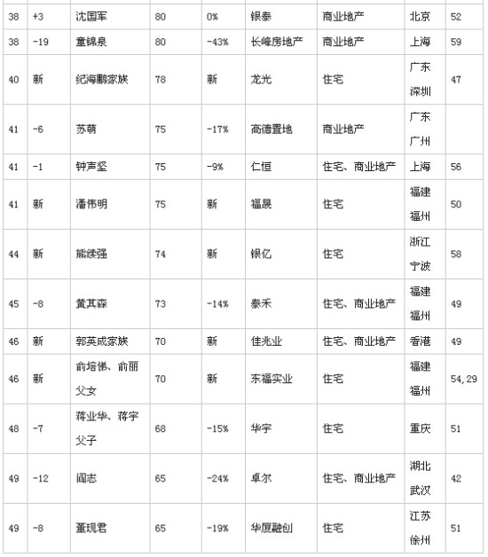 前50名地產(chǎn)富豪上榜門檻下降13%