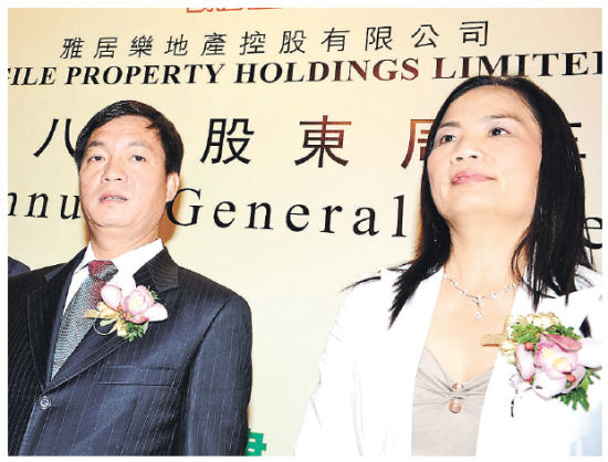 雅居樂聯(lián)席主席陳卓林太太陸倩芳(圖右),昨日未現(xiàn)身投資者電話會議。圖左為陳卓林。(資料圖片)