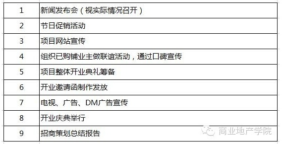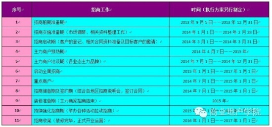 注:以上時間段須按招商實際情況及工程進度進行適應的調整。