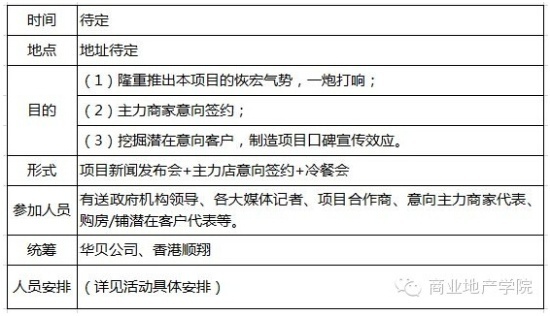 2)大中小商家的招商可以廣告造勢,人力推進,內外結合,大量登記,合理選擇,以點帶面,先做人氣,再做生意,分階段側重進行。