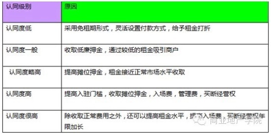 租賃形式分五種:整體出租(租金低,收益率低,一般只有3%-5%),分層出租或分片出租,散鋪出租(租金較高,租期一般2-3年)差別化租金策略,在商業(yè)地產(chǎn)中,品牌度與租金成反比,不同等條件下,品牌商戶租金高。