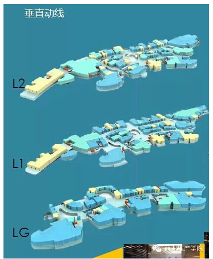 除LG層為單動(dòng)線外,L1、L2層均為雙動(dòng)線規(guī)劃。L1層開業(yè)率為零,故店鋪均是圍擋,動(dòng)線不清晰。L2層動(dòng)線相對清晰,雙動(dòng)線較為合理,無次東線,動(dòng)線也無死角、無回頭路。但因開業(yè)率低,很多地方的電梯停止運(yùn)行,所以導(dǎo)致很多地方的店鋪根本無人到達(dá)。