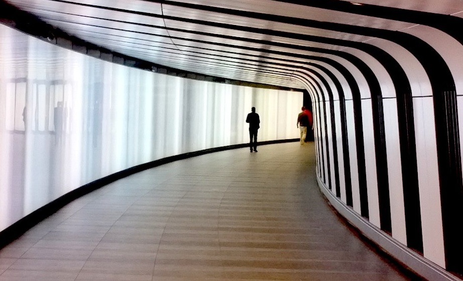 要想進入倫敦谷歌眼鏡店,你需要通過國王十字地鐵站外的燈光隧道。這段能改變顏色,看起來非?帷
