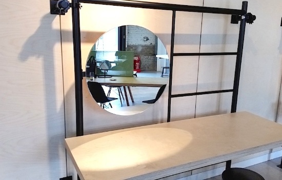 這里有個小鏡子,你可以利用它試戴不同的谷歌眼睛,就像在普通眼鏡店一樣。