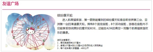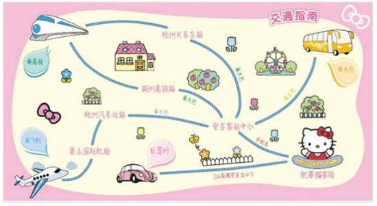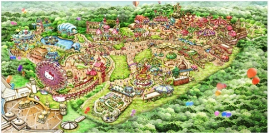 1. 這里有六大主題游樂區(qū),Hello Kitty 和她的朋友們分別住在凱蒂貓小院、音之村、歡樂港灣、精靈森林、蒸汽王國、友誼廣場: