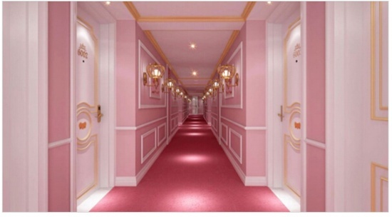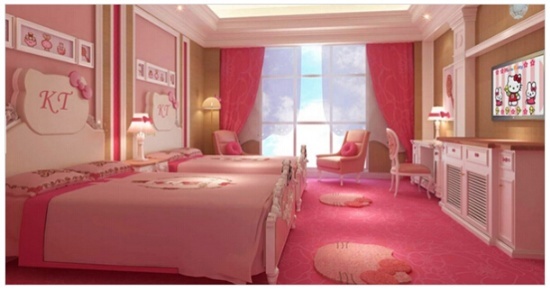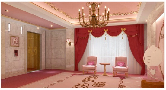 酒店里有全粉紅的主題房間,幸運(yùn)的話,Kitty 還會(huì)敲門找你聊天。