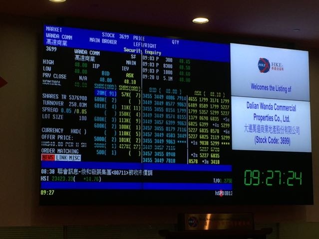 隨著萬達(dá)今掛牌,今年香港新股集資額升至約264億美元,晉升至全球新股集資第二位,僅次于紐約。