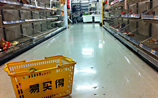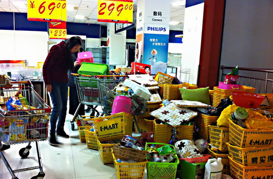 12月27日,剩余的商品不分種類堆在一起,市民在其中挑選商品。