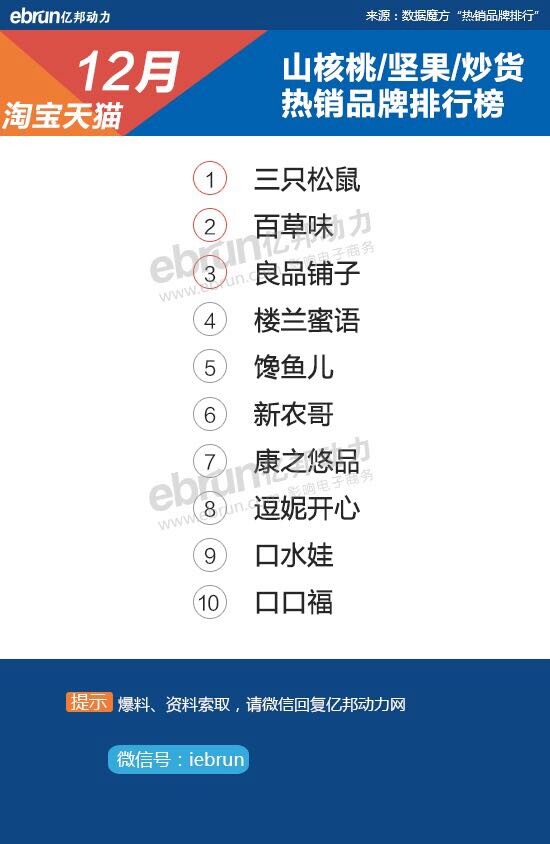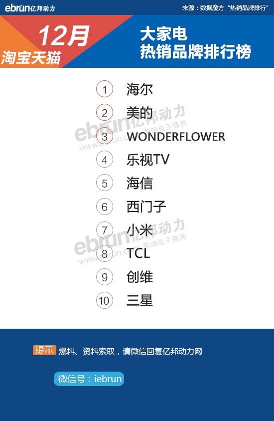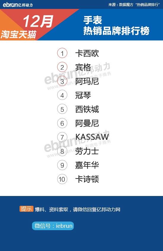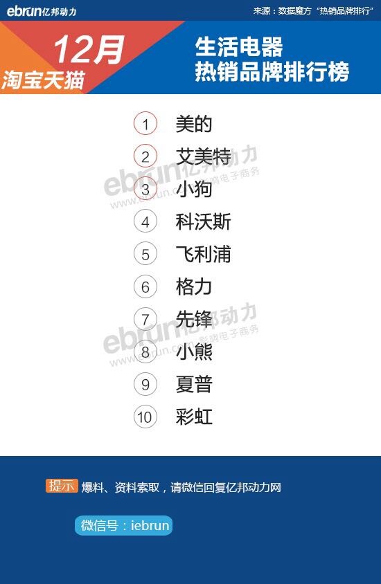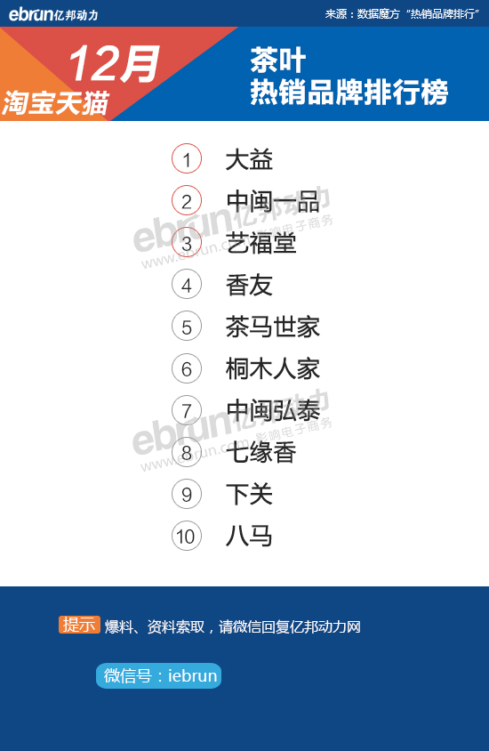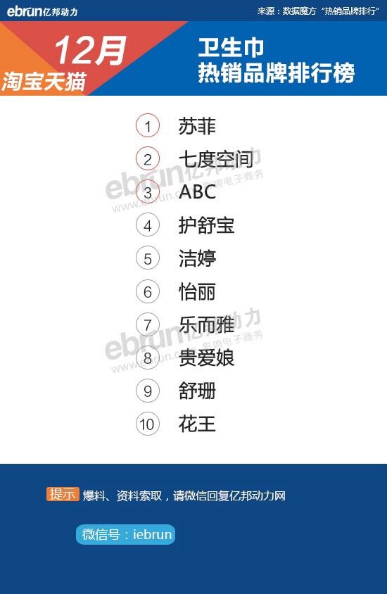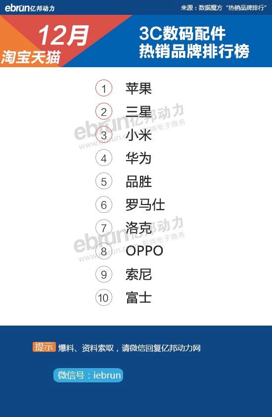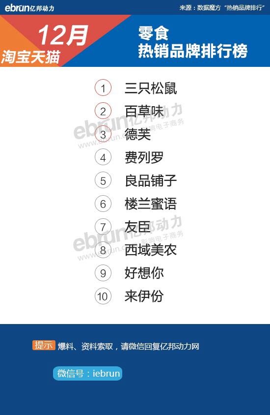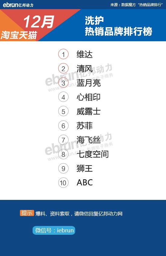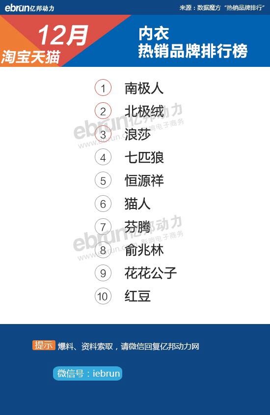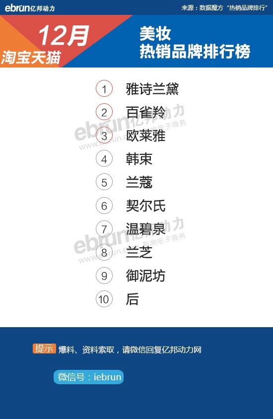 根據(jù)數(shù)據(jù)魔方的相關(guān)資料,億邦動力網(wǎng)對淘寶(含天貓)2014年12月份銷售排名前十的品牌進(jìn)行了匯總,共28個類目,僅供參考。