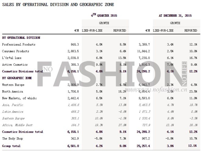 L’Oréal SA 歐萊雅集團四季度及全年銷售情況