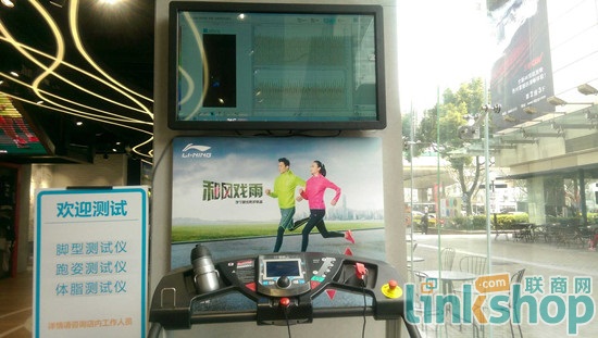 一層跑步產(chǎn)品區(qū)設(shè)有專業(yè)的跑姿測(cè)試設(shè)備,掛在跑步機(jī)上的屏幕可以觀測(cè)跑步者的各項(xiàng)體能數(shù)據(jù)。記者問(wèn)了店員,這款跑步測(cè)試設(shè)備還沒(méi)有和李寧的Apps相連,無(wú)法做到跑步測(cè)試數(shù)據(jù)上傳和商品在Apps的直接選擇。這和記者在Nike店里的體驗(yàn),還是相差甚遠(yuǎn)。 放在二樓據(jù)稱可以根據(jù)踢球力度而推薦鞋子的測(cè)試設(shè)備也還未開啟,店員對(duì)于如何使用尚不清楚。