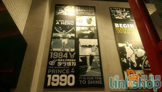 和Nike以及Adidas的跑步系列不同,體驗(yàn)店一進(jìn)門就是以韋德之道系列主打的各種籃球類相關(guān)運(yùn)動(dòng)符號(hào),抓著籃球身著李寧運(yùn)動(dòng)衣的模特兒,掛著籃球的鞋子貨架。