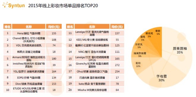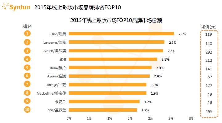 在演講中,谷熠揭曉了2015年線上彩妝品牌TOP10榜單。