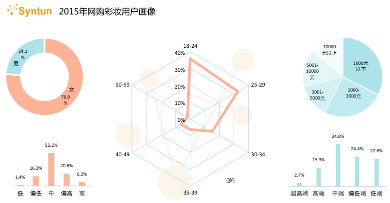 從線上彩妝消費(fèi)人群來看,據(jù)谷熠分析,90后女性是目前中國線上彩妝消費(fèi)的主力,雖然整體消費(fèi)還處在偏中低水平,但線上高端彩妝已明顯呈增長趨勢(shì)。