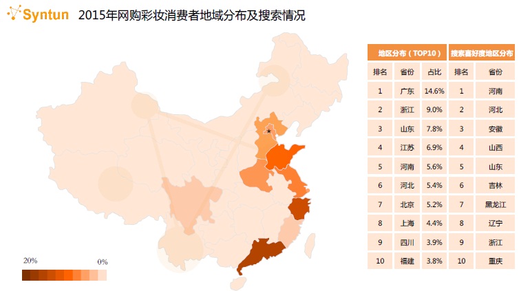 同時(shí),谷熠提出了一個(gè)有意思的現(xiàn)象!昂幽舷M(fèi)者在網(wǎng)購彩妝搜索喜好排名第一,而實(shí)際購買排名卻處于第五名。這說明河南消費(fèi)者在搜索流量與下單中間存在落差,這也說明河南市場(chǎng)存在機(jī)會(huì)!