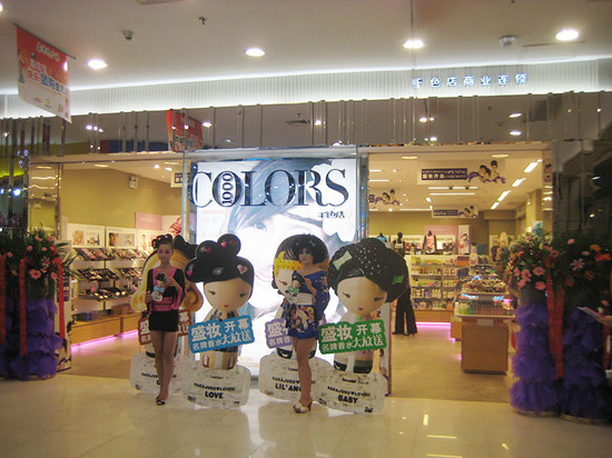 ↑千色的商場(chǎng)店,這種入口設(shè)置偏向于空間布局的考慮,中間用醒目的廣告畫將入口一分為二。