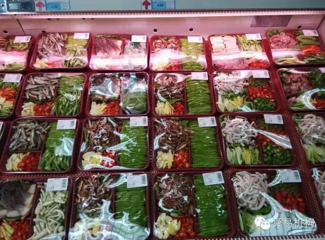 在蔬菜區(qū),所有的莖菜全部是用環(huán)保膠帶包起來(lái)的,葉菜也是用保鮮膜包住的,表面上這增加了物料成本及員工的工作量,但實(shí)際上這些措施都大大降低了生鮮的損耗率,即使會(huì)有一些耗損,香江的員工食堂也能消化一部分。其他的菜品也被陳列的非常整齊。