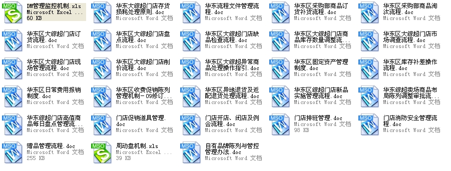 里面是華潤萬家的營運流程,總共28個文件!本人還有大量的資料,需要的可以跟帖說明!