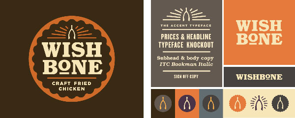 Tag Collective是紐約一家設(shè)計(jì)公司,相信好的設(shè)計(jì)不僅僅是一個(gè)漂亮的臉蛋,信任客戶并提供深思熟慮的設(shè)計(jì)解決方案,幫助客戶實(shí)現(xiàn)他們的潛能。Wishbone是費(fèi)城一個(gè)炸雞餐廳。一切從廚房出來(lái)的美食都是有點(diǎn)油膩的,就像任何一塊炸好的炸雞。所以這也是一個(gè)美味與油膩的設(shè)計(jì)。