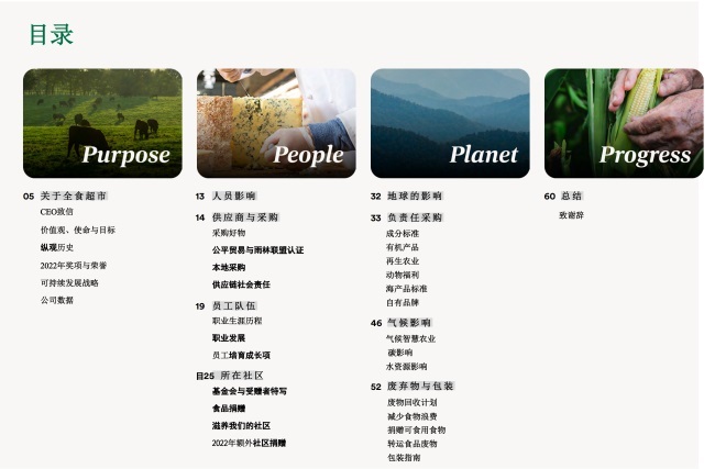 全食超市近日發(fā)布2022年度影響力報告,詳細介紹了全食超市為實現(xiàn)其使命“滋養(yǎng)人類和地球”所取得的最新進展。報告從環(huán)境保護、廢物處理、供應(yīng)鏈管理、員工福利、有機食品采購等多方面切入,突出全食持續(xù)推動食品系統(tǒng)變革的決心,以及為社會創(chuàng)造積極影響的成效。