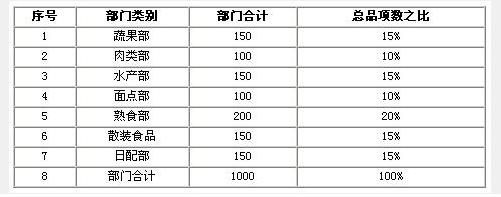 。、大型超市生鮮區(qū)商品結(jié)構(gòu)數(shù)據(jù)參考表