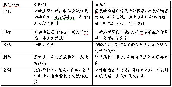 新鮮肉品的組織彈性佳,不見彈性的肉品表示鮮度較差,表面狀態(tài):一般鮮肉的表面含有水分且感覺光滑,以手觸摸時并求感覺濕狀,如感覺出濕濕的,甚至有水滴滴下來,即表示此種肉的品質(zhì)差,且吃起來沒有味道。如肉表面干燥且肉色暗紅,亦屬異常,很容易腐敗。