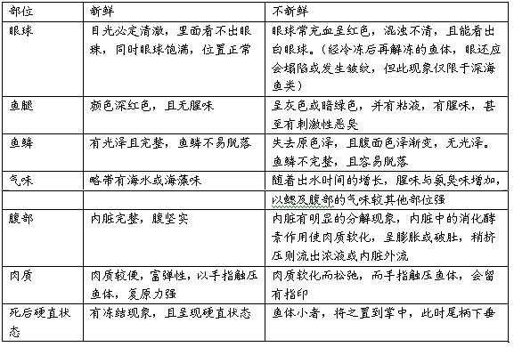 2、鮮度檢查規(guī)定水產(chǎn)品的鮮度判定法很多,如化學法、物理法、細菌法及感官檢查法,其中化學法及細菌法因需添很多儀器設(shè)備,花費很多時間才能完成,故目前一般生鮮超市的收貨鮮度檢查多,以感官檢查法,感官判定需要“三到”即眼到、手到、鼻到