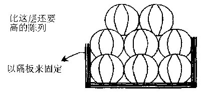 陳列的順序及不容易松散的方法(見圖6—8):以隔物板來固定周圍時(shí),可將商品堆放到不會(huì)掉出的高度為止。四季豆等比較長的變形果菜,多裝入一些也不容易松散。