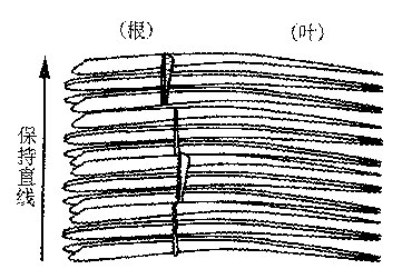 陳列方法(見圖6—5):一層根(較粗的部分)一層葉(較細(xì)的部分)地交互堆積。如每一層中的兩列都以相同的方向來排列,所陳列出來的效果將會(huì)相當(dāng)?shù)耐昝馈?br>