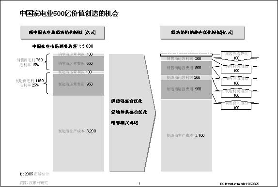 2005年中國(guó)家電消費(fèi)市場(chǎng)達(dá)5000億元,理想的制造商與零售商的系統(tǒng)整合至少可以創(chuàng)造500億元以上的價(jià)值,體現(xiàn)在節(jié)省浪費(fèi)與提升效率,這樣,消費(fèi)者可以真正以更實(shí)惠的價(jià)格獲得更優(yōu)質(zhì)的產(chǎn)品,獲得更好的消費(fèi)體驗(yàn),零售商與制造商實(shí)現(xiàn)持續(xù)的盈利增長(zhǎng),制造商更有資源投入在核心能力發(fā)展上,零售商更有資源投入在可持續(xù)的專業(yè)零售連鎖管理能力的發(fā)展上,這應(yīng)該是中國(guó)家電業(yè)的理性復(fù)歸。(作者:漢彬洲咨詢顧問 陳漢敏)
