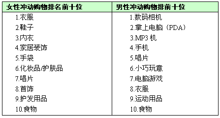 下面關(guān)于不同消費者最容易發(fā)生沖動購物的調(diào)查排名,對于男性來說高技術(shù)、新發(fā)明的產(chǎn)品比較容易產(chǎn)生沖動購買,而女性更多的在于服裝鞋帽的品類上。而食品在其所調(diào)查的品類中都是居于末位。