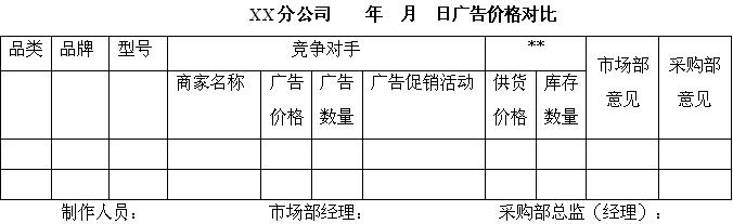 廣告價(jià)格對(duì)比格式如下: