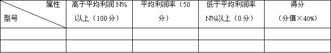 平均利潤率:指該品類的平均利潤率,該機型高于平均利潤率N%或低于平均利潤率N%以內(nèi)(不含N%)得50分,其他類推。