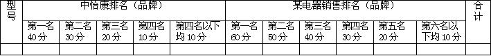 中怡康排名 (40分):第一名40分;第二名30分;第三名20分;第四名以后10分;