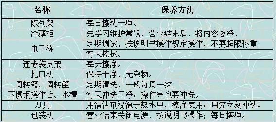 肆、熟食設備保養(yǎng)流程:
