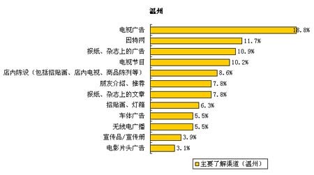 溫州消費(fèi)者品牌主要認(rèn)知渠道