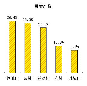 在鞋類產(chǎn)品的選擇中:休閑鞋成為消費(fèi)者的首選,皮鞋和運(yùn)動(dòng)鞋以微弱的差距緊跟其后。