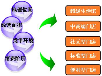聯(lián)華上海標(biāo)超通過(guò)大量市場(chǎng)調(diào)研和消費(fèi)者研究分析,結(jié)合門店地理位置、經(jīng)營(yíng)面積、競(jìng)爭(zhēng)環(huán)境、消費(fèi)階層等方面,進(jìn)一步對(duì)門店商圈屬性進(jìn)行細(xì)分,將上海地區(qū)門店分為超級(jí)生活館、中高端門店、社區(qū)型門店、標(biāo)準(zhǔn)型門店、便利型門店5種類型。