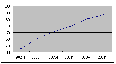 圖二:2001~2006年每百戶城鎮(zhèn)居民家庭空調(diào)擁有量變化趨勢