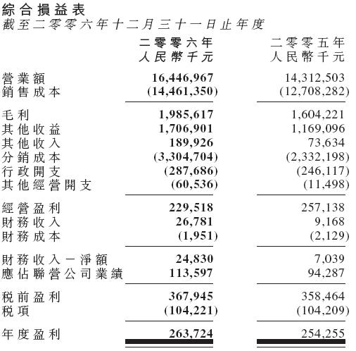 聯(lián)華超市股份公布2006年業(yè)績(jī)報(bào)告 盈利2.6億