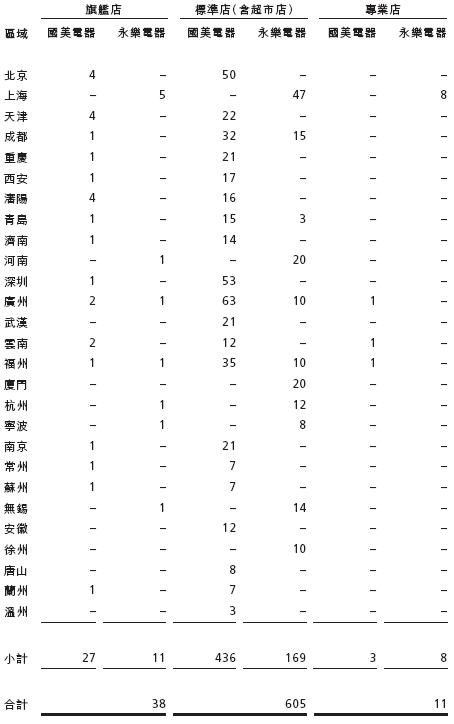 此外,截至2007年6月30日,另外有260家門(mén)店歸屬母集團(tuán)(不包括香港及澳門(mén)地區(qū)的門(mén)店),不在本集團(tuán)架構(gòu)內(nèi)。