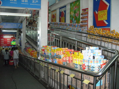 美廉美北太平莊店由工廠改建而成,硬件設施差。三層的超市只有上去的電梯,下樓只有步行這樣的坡梯。據(jù)消費者講,這個坡梯以前都是水泥地板,手推車走過的時候嘩啦啦的響,噪音很大的,“現(xiàn)在好多了,去年超市在上面貼了膠板。”