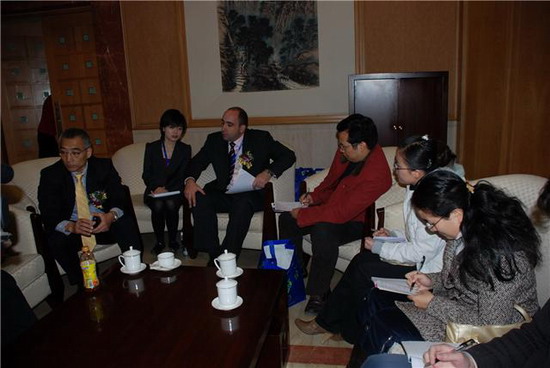 (TESCO中國運(yùn)營管理副總裁陶柯瑞和TESCO中國區(qū)董事兼副總裁莊南濱在山東招商大會(huì)上接受媒體采訪)
