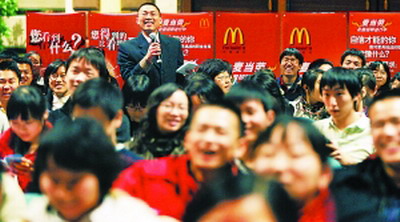 逆勢加速擴(kuò)張——麥當(dāng)勞來年在中國大陸的經(jīng)營發(fā)展策略因北大招聘會(huì)得以廣而告之;廣告宣傳效應(yīng)之好非在任何媒體投放商業(yè)廣告所能比擬;