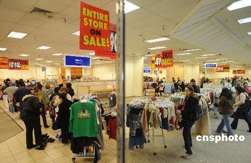 當(dāng)?shù)貢r(shí)間十二月二十七日,洛杉磯附近的一家Mervyns百貨店進(jìn)入破產(chǎn)關(guān)門(mén)前的最后一天大甩賣(mài),全場(chǎng)商品一律一折甩賣(mài),連貨架也在甩賣(mài)之列,眾多消費(fèi)者前來(lái)?yè)毂阋。受美?guó)經(jīng)濟(jì)衰退的影響,擁有五十九年歷史的美國(guó)老牌連鎖百貨公司Mervyns今年夏天宣布破產(chǎn)倒閉,由于沒(méi)有找到接手的公司,最終該公司宣布旗下一百四十九家商店進(jìn)行清貨銷(xiāo)售,然后關(guān)門(mén)停業(yè)。