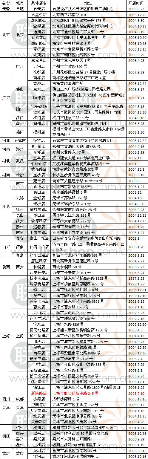 卜蜂蓮花2008年在華擴張盤點及門店分布